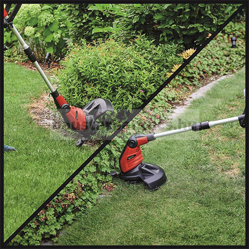 A GC-ET 4530 elektromos fűkasza praktikus, nagy teljesítményű készülék, amely a nehezen hozzáférhető kerti területeken is lehetővé teszi, hogy jelentős fáradozás nélkül is ápolt legyen a gyep. A 180°-kal elforgatható és négy lépésben dönthető motorfejnek köszönhetően kényelmesen vághatók függőleges felületek is, tehát sokoldalúan használható készülék. A GC-4530 ET erős villanymotorral rendelkezik. Fokozatmentesen teleszkópozható, kiegészítő fogóval rendelkező alumínium tolószára lehetővé teszi a testmagassághoz történő pontos beállítást, így nem okoz kifáradást a munka. A ház és a kiegészítő fogó minőségi, ütésálló műanyagból készül. A praktikus élkeréknek köszönhetően kényelmesen és pontosan vezethető a fűkasza bármilyen él mentén. A dupla damil segítségével tiszta vágóképet kapunk és az automata damilvezető kényelmesen adagolja a vágószálat. A praktikus Flowerguard garantálja a biztonsági távolságot a virágoktól, így segíti megtartani a kert szép látványát. A fűkasza tápkábelét húzómentesítő védi a kopástól és a sérüléstől. A kiegészítő védőtető a felhasználót védi a felcsapodó tárgyaktól, pl. kavics, faforgács. A szállítmány része a 3 db damiltekercs, a fűkasza praktikus tartozéka.