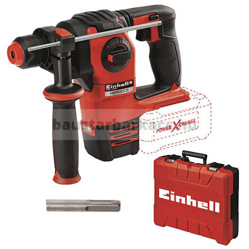 Az Einhell Herocco akkumulátoros fúrókalapácsa nélkülözhetetlen segítség az ezermesterek kezében: megbízható teljesítményt nyújt fúrás, ütvefúrás, illetve vésés közben (véső rögzítéssel vagy rögzítés nélkül). A szénkefe nélküli motor nagyobb erőátvitelt és hosszabb üzemidőt garantálnak, mint a szénkefével gyártott motorok. A pneumatikus ütőmű max. 5500 ütés/perc sebességgel és 2,2 Joule ütőenergiával dolgozik. Véséskor a csempének és a téglának esélye sincs a Herocco erejével szemben. Ha pedig fúrásra kerül a sor, akkor már a betonnak és a gránitnak sincs esélye! A gyors szerszámcseréről az univerzális, félautomata SDS-plus tokmány gondoskodik. A fordulatszám szabályozó elektronika lehetővé teszi, hogy mindig a munka elvégzéséhez szükséges fordulatszámon dolgozhasson a készülékkel. A Softgrip felületű ergonomikus markolatnak köszönhetően a fúrókalapács kezelése egyszerű és kevésbé fárasztó. A markolat rezgéscsillapított, így alacsony rezgésszint mellett, és rendkívül pontosan dolgozhat a készülékkel. A készüléket fokozatmentesen állítható, kemény fémből készült furatmélység-ütközővel szállítjuk. A Herocco akkumulátoros fúrókalapácsát LED-világítással szerelték fel a munkaterület optimális megvilágítása érdekében. A készülékhez mellékelünk egy mágneses bit-adapter, amelyet csavarozáshoz használhat. A készüléket a mellékelt praktikus E-Box kofferben tárolhatja és szállíthatja. A nagy teljesítményű Power X-Change akkumulátorokat a termékcsalád valamennyi tagjához használhatja, függetlenül attól, hogy kerti- vagy szerszámgépekkel dolgozik. A terméket akkumulátor és töltőkészülék nélkül szállítjuk; ezeket külön vásárolhatja meg. Ha optimális eredményt szeretne elérni, akkor 3,0 Ah vagy nagyobb kapacitású akkumulátort vásároljon.