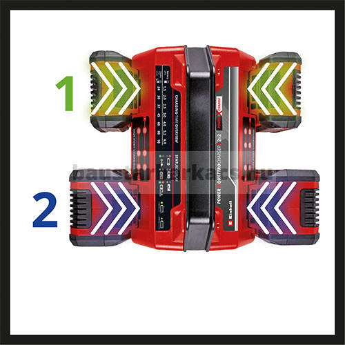 - Két akkumulátor folyamatos egyidejű töltése biztosítja a gyors / magas rendelkezésre állást + a megszakítás nélküli munkát
