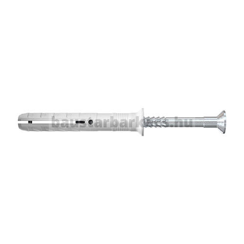 N-S fischer beütődübel kiváló minőségű nylonból, cinkkel galvanizált szegcsavarral. A dübel előszerelt a gyors alkalmazhatósághoz. A beütődübellel történő szerelés különösen időtakarékos. A szegcsavar beütésekor a dübel terpeszt és biztonságosan rögzül az építőanyagban. A fischer N-S beütődübel ideális faszerkezetek rögzítéséhez minden típusú építőanyag esetén beltéren.