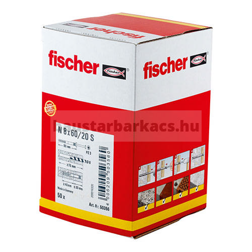 N-S fischer beütődübel kiváló minőségű nylonból, cinkkel galvanizált szegcsavarral. A dübel előszerelt a gyors alkalmazhatósághoz. A beütődübellel történő szerelés különösen időtakarékos. A szegcsavar beütésekor a dübel terpeszt és biztonságosan rögzül az építőanyagban. A fischer N-S beütődübel ideális faszerkezetek rögzítéséhez minden típusú építőanyag esetén beltéren.
