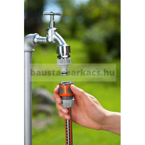 A GARDENA tömlőelem gyors és kényelmes csatlakoztatást tesz lehetővé a tömlő végén. A csatlakozás egyszerű húzó mozdulattal szétbontható. A tömlőelem egyszerűen csatlakoztatható a vízcsaphoz. A GARDENA tömlőelem 13 mm (1/2") és 15 mm (5/8”) tömlőkhöz használható. a tömlők egyszerűen csatlakoztatható a vízcsaphoz. POWER GRIP: a speciális formájú hollandi anyának köszönhetően különösen jól tartja meg a tömlőt és problémamentes a szerelés. Rovátkolt puha műanyag fogófelületnek köszönhetően a GARDENA tömlőelem biztosan és jól fekszik a kézben. A gumigyűrű további védelmet nyújt a terméknek.