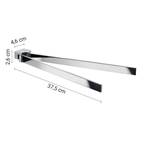 Falra szerelhető törölközőtartó 2 db szögletes vonalvezetésű tartórúddal, króm felülettel. Tartórúdjai mozgathatók, így tetszés szerint állíthatja be azokat aszerint, hogy hány db törölközőt szeretne rajta elhelyezni.