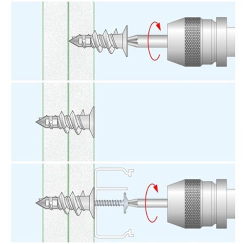 Szerelvények gipszkartonhoz való rögzítésére megfelelő 6x29 mm-es önfúró műanyag gipszkarton tipli.