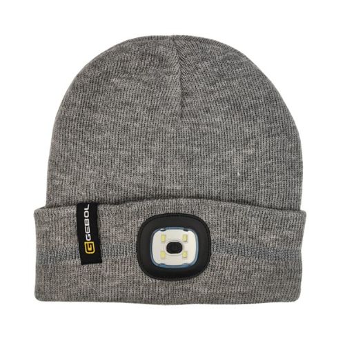 Szürke, fényvisszaverő csíkokkal ellátott sapka levehető, újratölthető LED lámpával, 4 fényszinttel.