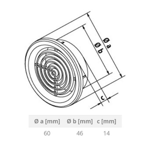 Műanyag, kerek szellőzőrács, fehér színben. Kisebb helyiségek szellőztetésére alkalmas. Rács átmérője: 50 mm. A csomag 4 db szellőzőrácsot tartalmaz.