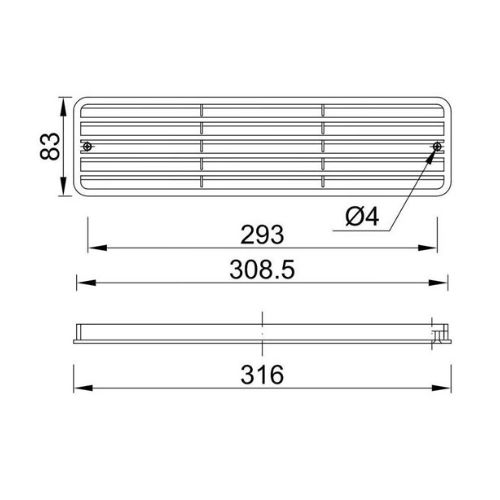 Műanyag, szögletes szellőzőrács barna színben. Kisebb helyiségek szellőztetésére alkalmas, valamint a bútoriparban is alkalmazható. Mérete: 305 x 75 mm