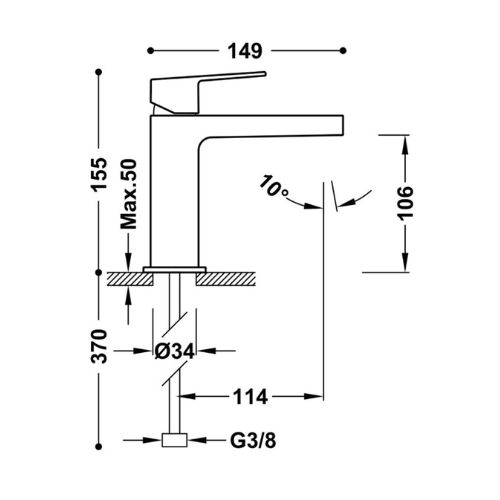 A Tres gyártó Project szériás mosdó csaptelepe, leeresztő nélkül, fekete bronz színben.