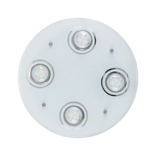 Aki a mennyezeti lámpák terén is a kerek formák és a modern stílus mellett teszi le a voksát, annak bizonyára elnyeri a tetszését ez a cserélhető LED fényforrásokkal szerelt modell. A Naomi mennyezeti lámpa füstszínű üveg és króm kombinációjával készült, 4 db meleg fehér fényű LED fényforrással szállítjuk. A 300 mm átmérőjű lámpát elsősorban a nappaliba, az étkezőbe vagy a hálószobába ajánljuk. A LED fényforrások egyenként 5 W energiát fogyasztanak, fényerejük 400 lumen, színhőmérsékletük 3000 K, névleges élettartamuk mintegy 20 000 óra. A GU10-es típusú foglalatokba 4 db, egyenként maximum 15 W teljesítményű LED fényforrás helyezhető be. A lámpa nettó súlya 1,2 kg.