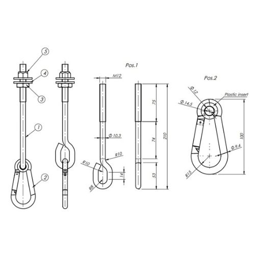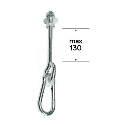 M12-es átmérőjű 130 mm hosszú szárral ellátott hintakampó karabínerrel.
