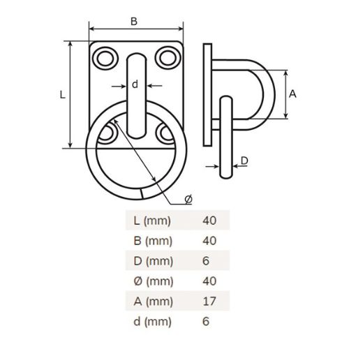 SB kötélkarika talpas 40 x 40 d=6 mm inox