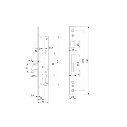SB portálzár 23mm kampós 40x40be +zárbetét