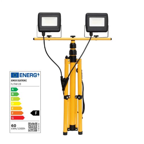 Állványos, LED-es, hordozható FLL STAND 2/30 fényvető kül és beltéren egyaránt használható. A felszerelt 2 db egyenként 30 W teljesítményű LED fényforrás 4000 lumen erősségben világít. A termék csatlakozóvezetéke 2,1 méter hosszú, amit az állványon található kábeltartóra feltekerhető. Optimális építési, felújítási munkaterületek és megfelelő megvilágítást igénylő hobbitevékenységek megvilágítására. Összeszerelése rendkívül gyors és egyszerű.