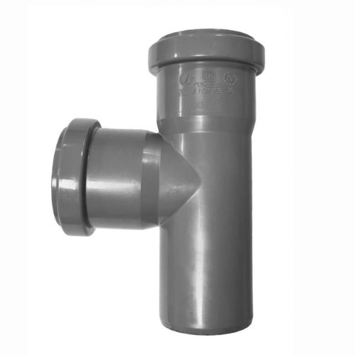 Lefolyó T-idom csatornához, átmérő: 50 mm, ív: 87 fok. Szennyvíz, csapadék víz elvezetéséhez. 60 fokig alkalmazható, vegyszerálló, nehezen éghető, környezetbarát, újrahasznosítható, áttoló karmantyúval toldható.