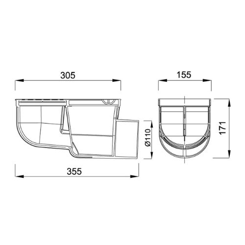Styron kültéri víznyelő oldalkifolyású 110 mm