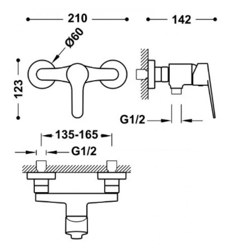 Tres Base Egykaros zuhanycsaptelep szettel króm színben. (21516710)