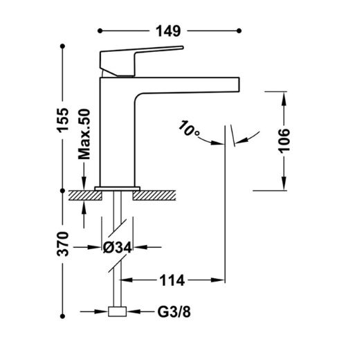A Tres gyártó Project termékcsaládjába tartozó mosdó csaptelep leeresztő nélkül metallic black (metál fekete) színben.