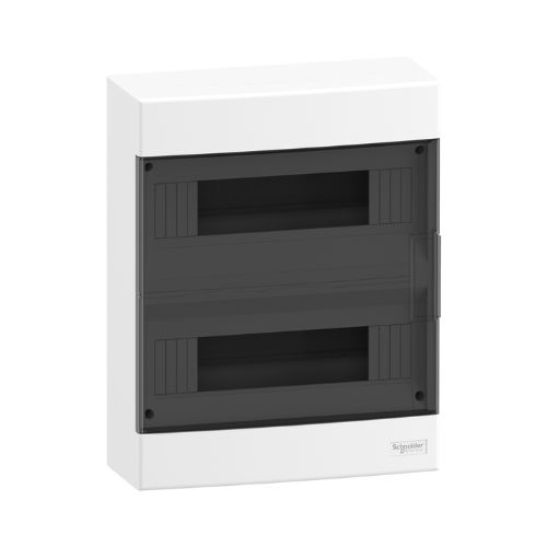 Schneider lakáselosztó falon kívüli, 24modul (2x12), füstszínű ajtóval, műanyag, PE/N sínnel