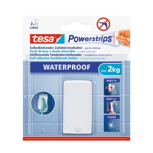 Tesa Powerstrips vízálló, öntapadó fogkefe-tartó, fehér