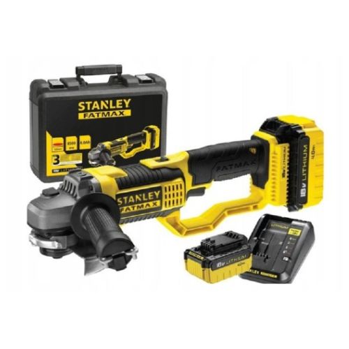 Stanley Fatmax 18 V 4Ah Akkumulátoros sarokcsiszoló 2 akkuval, 125 mm átmérő, FMC761M2-QW