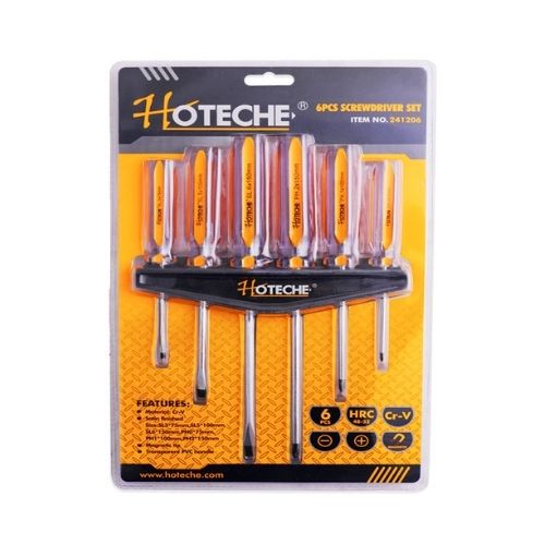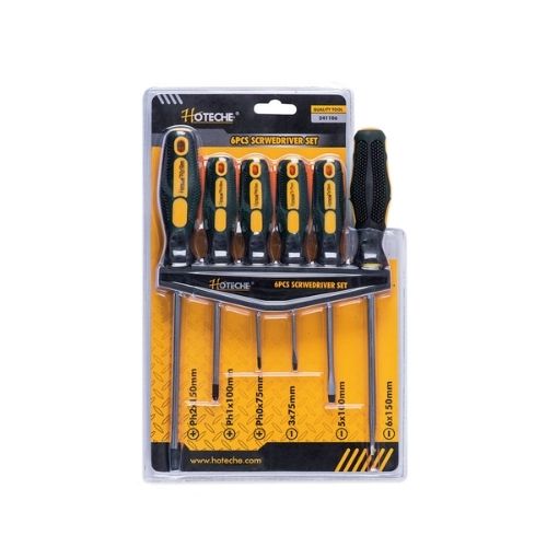 Hoteche csavarhúzó készlet 6db-os mágneses gumis nyéllel falitartóval Crv.