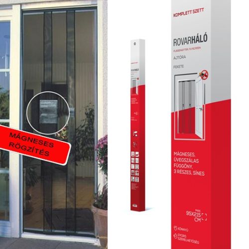 JKH rovarháló függöny 95 x 215cm mágneses üvegszálas 3 részes fekete