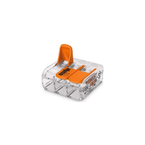 Wago vezeték összekötő 3 x 0,5-2,5mm2 átlátszó 24A narancs fedél