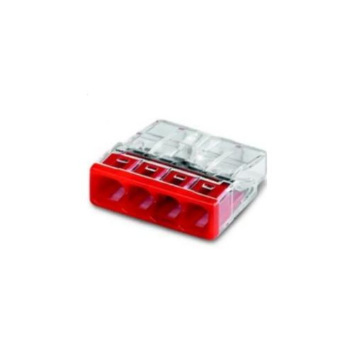 Wago vezeték összekötő 4 x 0,5-2,5mm2 átlátszó 24A piros fedél